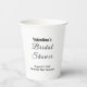 Classic and timeless paper cups that can complement various bridal shower themes. These are also suitable for brides-to-be who prefer a text based design without background elements for readability. The black texts contrasting on the white background also improves readability. The texts are center aligned and the fonts used are calligraphy, script and sans serif. Calligraphy and script fonts are used to enhance the design while the sans serif font is used to enhance readability. Customize it by typing the bride-to-be’s name, date and location. You can also change the contents or wordings in the design tool including the font style, font color and background color. Please check the appearance of the front and back sides after typing texts. If the appearance is pleasing to you, you can place your order now. If you need to resize or reposition the texts, please adjust in the design tool. Paper cups for serving beverages with a touch of personalization for your guests. Warm wishes to the bride-to-be.
