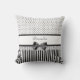 Enhance your décor with this Victorian-inspired black and white decorative pillow, designed with a chic and feminine aesthetic perfect for girly, elegant spaces. The artwork features stylish black polka dots across the top and bold vertical black-and-white stripes along the bottom, separated by a customizable center band where you can add your name. A beautifully printed eyelet lace trim and a classic black satin bow add a charming vintage touch. This is a flat printed graphic—no real lace or fabric embellishments. The image depicts this sophisticated layout clearly, with the personalization area displayed in elegant cursive text and the decorative bow and lace providing a fashionable, Victorian-inspired finish.