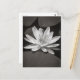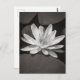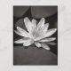 Black and white fine art postcard of a photo of a peaceful and serene water lily floating on the water. This photo is also available in my store on a wide range of quality products from home decor to party supplies and personal accessories.