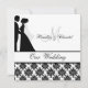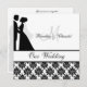 Black and white damask print with a white band, a silhouette bride and groom, and areas you can personalize with your names, monogram initial, wedding ceremony and reception information on a customized wedding invitation that's classy and traditional all in one! Scroll down for matching envelope seals.