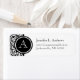Black And White Wedding Damask Monogram Labels. Elegant and simple customizable return address labels with black and white background colour damask design. customize your initial, name and address details. You can change the font style and colour as well as the font size and placement. The monogram damask return address labels make a great addition to your wedding invitation envelopes, rsvp, bridal shower and thank you note envelopes and for your business mail.
