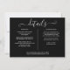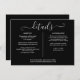 An elegant wedding details information enclosure card personalized with your special details set in stylish typography and your names and wedding date on the reverse on a black background. Designed by Thisisnotme©