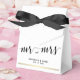 Black and white wedding favour boxes (tent favour box with black ribbon) with gold lines and customizable text - you can add bride's and groom's name and wedding date.