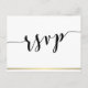 Invite guests to respond in style with our Black and White Wedding RSVP Postcards featuring elegant gold lines. Sleek, modern, and timeless, these postcards perfectly complement a sophisticated wedding suite while making it easy for guests to RSVP.