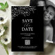 Announce your special day in style with this black and white wedding save the date featuring delicate white anemone line art by Victoria Grigaliunas of Do Tell A Belle. The minimal, modern, and classy design includes a customizable QR-code to easily share your wedding details. The card reverses to reveal your photo, making it both personal and elegant. Use the save the date templates to add your custom text, then choose between printed cards or a digital download for online sharing.