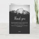 Black and white wedding under the mountains. Landscape photograph of a snow covered mountain with darkness below and white cloudy sky above. Names of the couple are in black font above the mountain in the sky and all the details are in white font below the mountain. Completely customizable and personalizable wedding products.