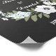 Poster print for welcome wedding sign with white flowers wreath design and black chalkboard background.
