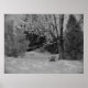 This lovely winter landscape photography is an amazing poster of a snow covered bench sitting amongst the trees. Nice black and white print to give as a gift or hang in your office.
