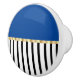 Add a pop of pizzaz to your decor. This design works well with most decors and patterns. The bottom three-thirds of the design is black and whites stripes with the remaining portion in a solid blue. Pulling this look together is a gold coloured ribbon.