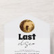 This all-in-one Black and White with Gold Last Disco Bachelorette Weekend invitation encapsulates the essence of timeless elegance merged with a vivacious spirit. Its sleek black and white palette harmoniously intertwines with the lively charm of the shimmering gold disco ball, creating an invitation that serves as a complete package of sophistication and excitement. With its minimalist yet striking design, this invitation effortlessly sets the stage for a bachelorette weekend that promises unforgettable moments of fun and celebration, infused with the vibrant energy of the disco era.