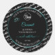 Make a lasting impression with this elegant and luxury product label design featuring a black and white word cloud border with a shimmery teal frame.