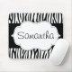 A stylish black and white zebra pattern is featured on this personalized mousepad.