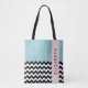 Black and White Zigzag, Chevron, Blue, Your Name Tote Bag