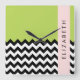 Black and White Zigzag, Chevron, Green, Your Name Square Wall Clock