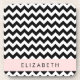 Black and White Zigzag, Chevron Pattern, Your Name Coaster