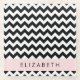 Black and White Zigzag, Chevron Pattern, Your Name Glass Coaster