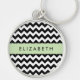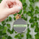 Black and White Zigzag, Chevron Pattern, Your Name Keychain