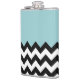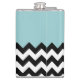 Black and White Zigzag Pattern, Chevron, Blue Hip Flask