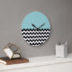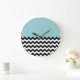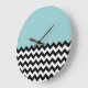 Black and White Zigzag Pattern, Chevron, Blue Large Clock