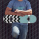 Black and White Zigzag Pattern, Chevron, Blue Skateboard
