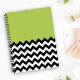 Black and White Zigzag Pattern, Chevron, Green Notebook