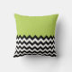 Black and White Zigzag Pattern, Chevron, Green Throw Pillow
