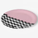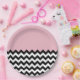 Black and White Zigzag Pattern, Chevron, Pink Paper Plate