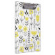 Organize your papers with this Scandinavian-inspired clipboard. It features a yellow and black floral pattern. Personalize by adding your name or short phrase. This floral clipboard will be perfect as a personalized gift. Matching items are available.