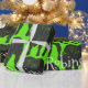 Wrap your Christmas presents in this darling personalized wrap which features a pattern of Angus bulls a few who are wearing a red Santa hat.