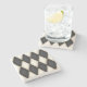 Black & Antique White Harlequin Chequered Pattern Stone Coaster
