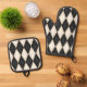 Black & Antique White Harlequin Oven Mitt & Pot Holder Set