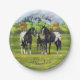 Black Appaloosa Horses In Summer Pasture Paper Plate
