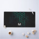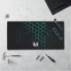 Black aqua blu honeycomb geometry pattern Monogram Desk Mat
