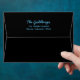 The text on this black and aqua blue A7 (fits 5"x7" Zazzle invitations and greeting cards) envelope is fully customizable and you can change it using the personalize option. For more extensive changes to the envelope, including changing the font, font colour, or text placement, use the customize option. The colours on this envelope are black and aqua blue. It is meant to match the Bar Mitzvah invitation set in the same colours.