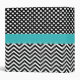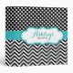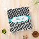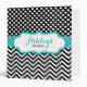 A trendy and cute personalized recipe binder with a black, teal, aqua and white polka dots and chevron pattern design. A cool and unique custom kitchen binder.