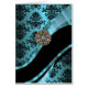 PERSONALIZE this classy chic elegant traditional vintage black damask pattern on an aquamarine turquoise blue background and a modern swirl design ribbon with girly faux diamond crystal jewel , with your own text, name or monogram, initials .