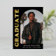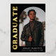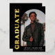 Stylish and trendy graduation announcement featuring the graduate's photo on the front with an offset arch photo frame. "Graduate" is displayed in bold gold foil lettering on a black background. Personalize the front of the arch photo graduation announcement by adding the graduate's name, school, and graduation year. The card reverses to display an additional 3 photos with space for custom text such as future college plans, career plans, graduation party details, etc. The gold foil graduation announcement is perfect for both high school and college graduates.