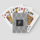 Custom monogram playing cards with a black and white arrow pattern, black frame and white monogram.