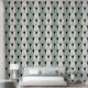 Black Art Deco Pattern on sage green white stripes Wallpaper