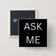 Black Ask Me Button Pin for Volunteer, business