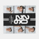 Modern black & white athletic graduation blanket featuring an eye-catching class year layout in a varsity font, a photo collage of the grad, two white stripes, their name, and the school or college they attended.