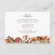Elevate your bridal shower with the "Fall in Love Autumn Bridal Shower Card Collection." This detail card features a coordinating taupe pattern on the back, perfectly complementing the hand-painted watercolor leaves, dahlias, and roses in vibrant fall hues on the front. The cohesive design ensures your event radiates warmth and charm. Create an unforgettable celebration of love and beauty, capturing the essence of autumn.