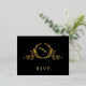 Elégant Noir et or Mariage RSVP avec véritable feuille d'or monogramme et texte sur le devant. Dos diviser en deux sections, avec section RSVP dans un bel arrière - plan d'impression de texture or coordonnant avec notre enveloppe d'invitation en monogramme noir et or. Deuxième section avec l'information d'envoi en noir et texte en teintes dorées. Design pratique et élégant. Veuillez noter que le noir sur le dos est dans le ton mat et muet puisque le dos de cette carte postale ne vient pas dans une finition brillante comme l'avant. Invitations correspondantes disponibles. Une partie de notre "Black and Gold Monogram Mariage Collection" avec une variété de produits de coordination disponibles. Visitez la collection entière à l'adresse suivante : https://www.zazzle.com/collections/black_and_gold_monogram_wedding_collection-119092477004367833