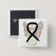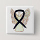 Awareness pin features the painting of a black awareness ribbon angel on a custom button pendant. The black awareness ribbon colour means support for Anti-Gangs, Anti-Terrorism, Melanoma, Mourning, Narcolepsy, Sleep Disorders, Trauma Awareness, and Students for Gun Control. Black awareness angel ribbon art lapel pins or buttons can be customized with personalized messages to make great cause buttons for fundraiser pendants for cancer or other causes, awareness pin gifts, or other special pendant events or awareness lapel pin for cause's occasions.