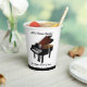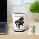 Piano recital reception paper cups, done in white, with graphics of a black baby grand piano. Personalize the black custom text for your music themed recital or reception event.