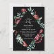 This Trendy Dark Elegant Floral Baby Shower - features white handwritten and elegant script text with dark chic red and rich burgundy roses and lush greenery on the black background. The reverse side of the invitation is laconic black. Make your wedding expressive and memorable with this dark trendy collection.