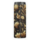 This water bottle has a black background and a golden foliage with birds, leaves and flowers.