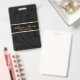 Classy and elegant design. Black background and floral swirl with black gold stripe with monogram