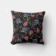 Black Background Floral Pink Blue Pattern Design Throw Pillow