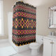 Bold geometric pattern shines against a black background, offering a touch of ethnic charm.